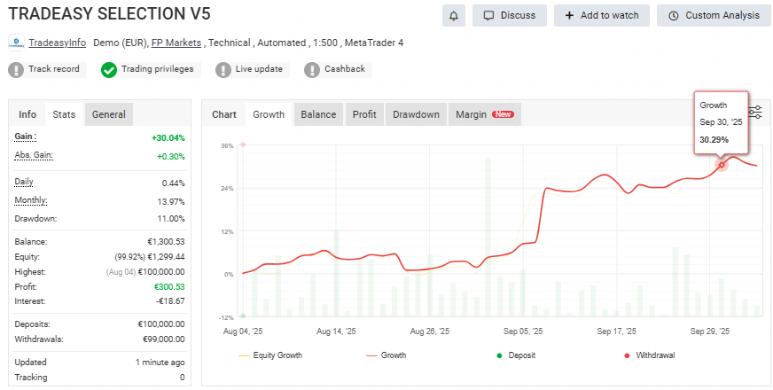 El gran pilar de consistencia. Con 28 operaciones, su constancia y volumen sostuvieron la curva de beneficios a lo largo del mes. Un ejemplo de cómo la disciplina operativa en trading automático puede suavizar la volatilidad y consolidar ganancias.